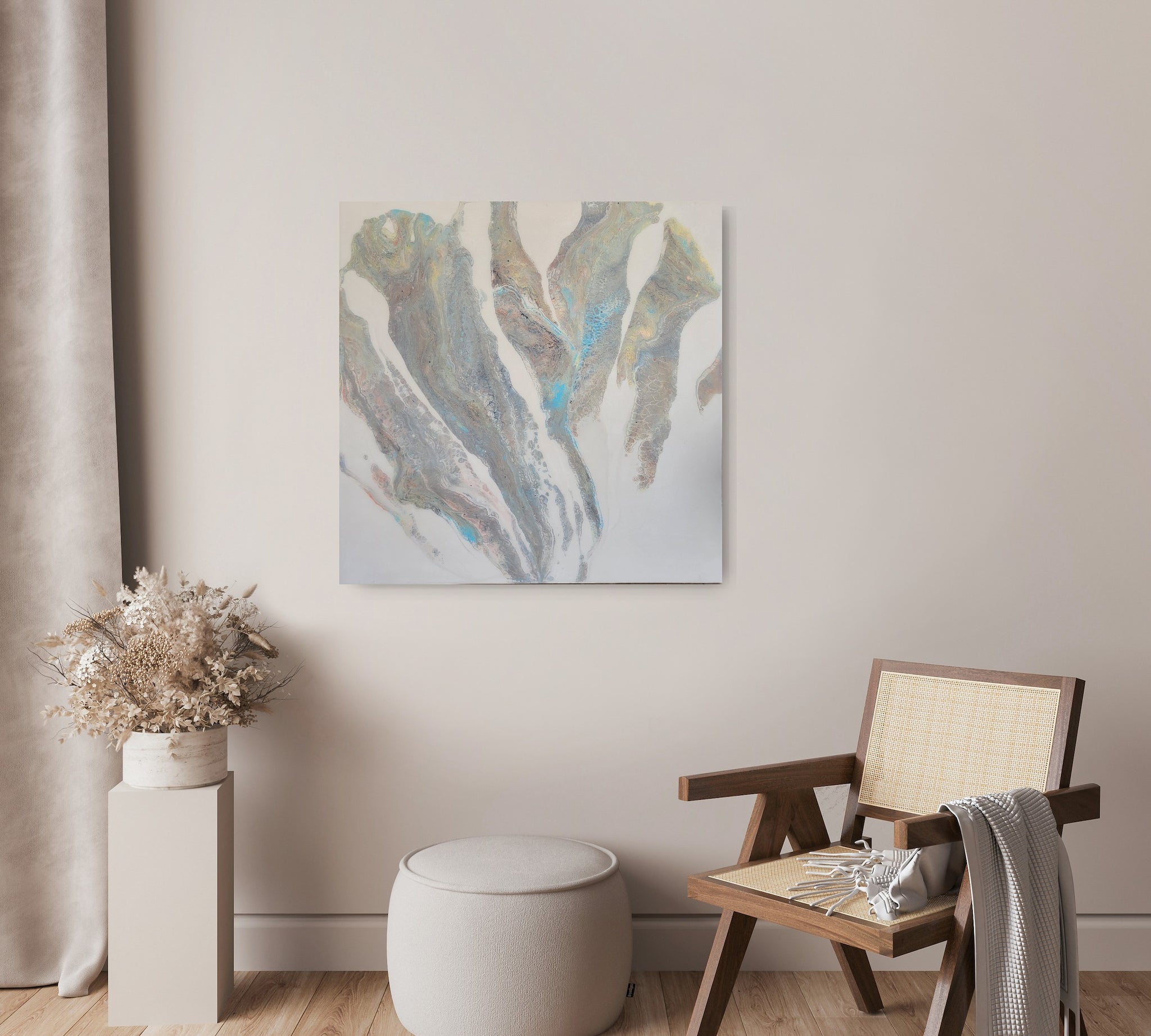Those Resin Epoxy paintings transport you into their world. They are matte, a bit fuzzy and they bring a sense of peacefulness and bliss.
